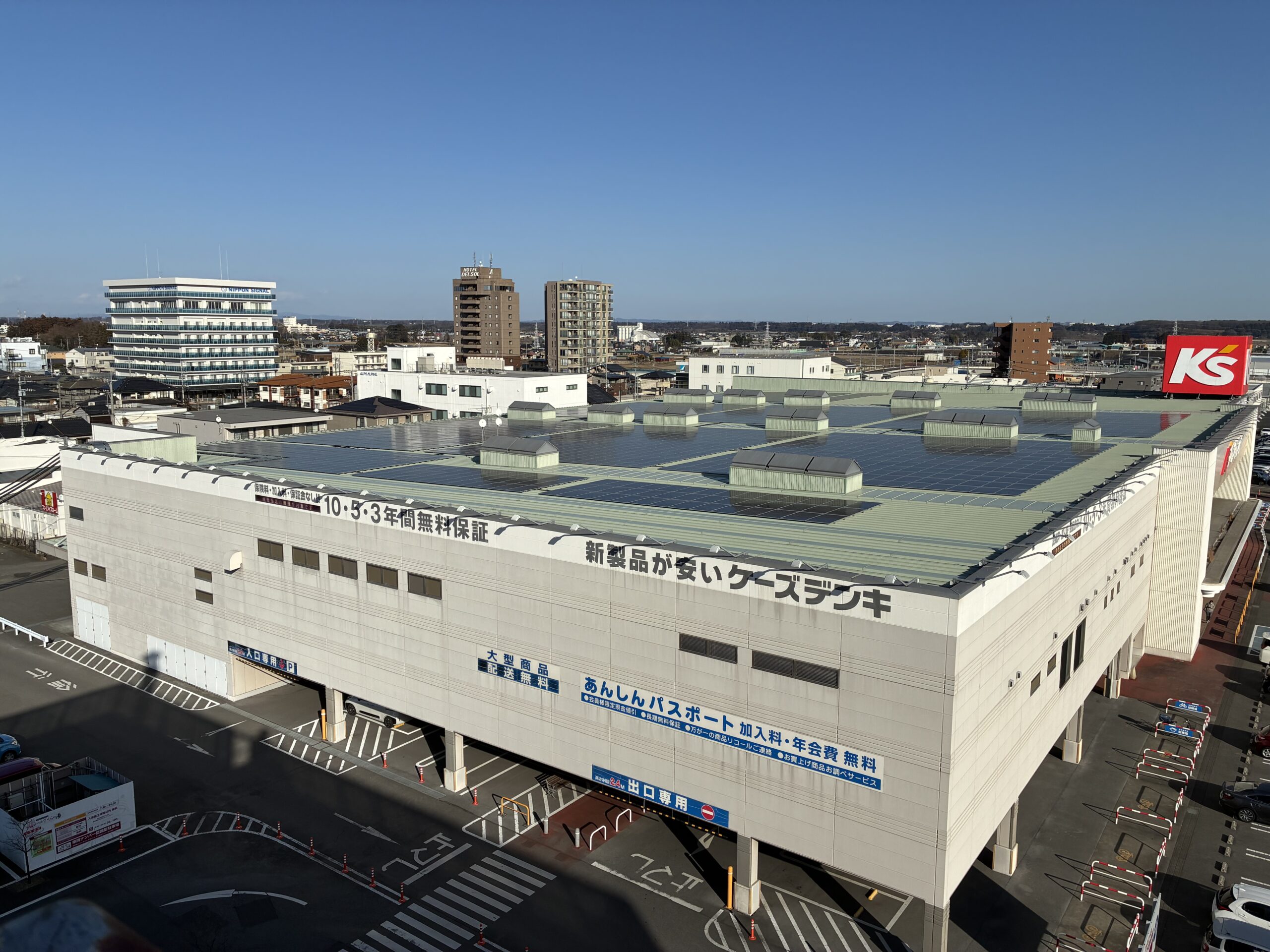 本事業は、株式会社クリーンエナジー・ソリューションズ(栃木銀行グループ)の提供するPPAモデルを採用したものです。弊社所有の東側建物(ケーズデンキ)の屋上に太陽光パネルを設置し、施設内で再生可能エネルギーを活用することで、年間約315トンのCO2排出量削減を見込んでおります。